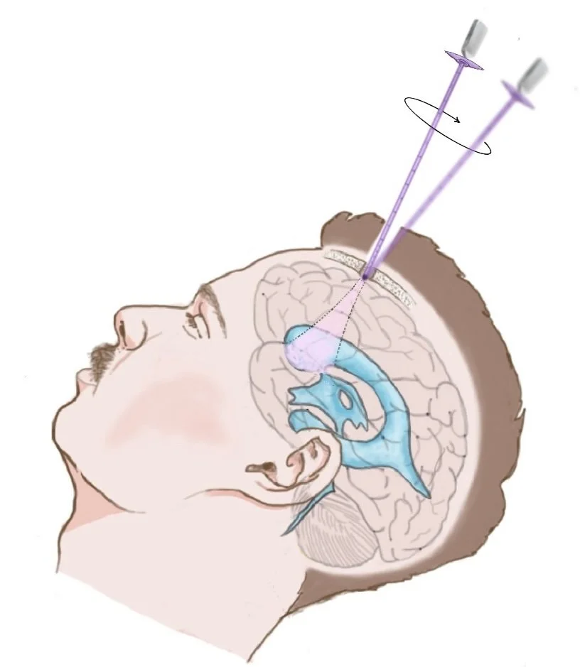 With this urgency, placement of EVDs are often done at the bedside (outside of the operating room) based on external anatomy alone (“blind approach”). Neurosurgeons have no way to see inside the skull to place EVDs in their target location (Right Lateral Ventricle).
